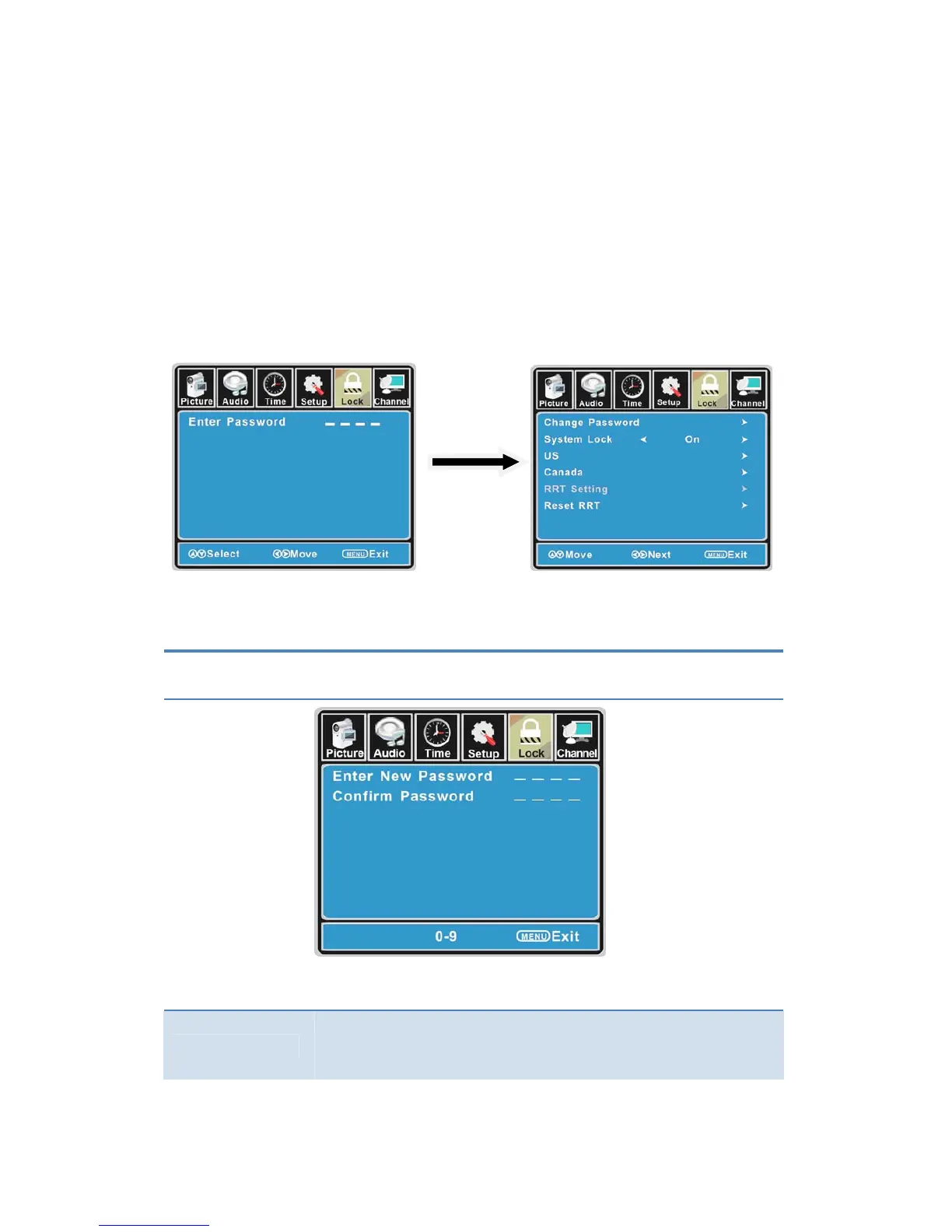 3. Usethe▼ buttontohighlight“EnterPassword”item,usethenumerickeystoinput4‐digital