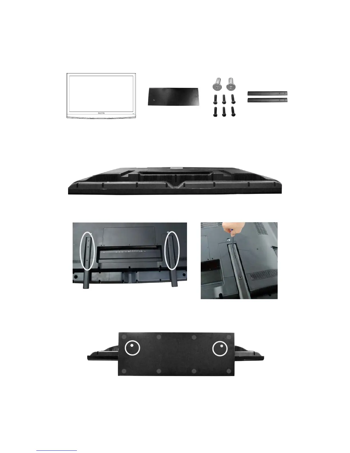 1. CarefullyplacetheTVfaceddownonasuitablesurfacewithasoftclothorcushion withthe