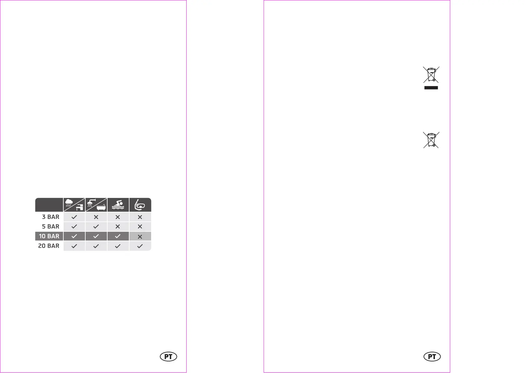 À prova de água até 10 bar. Esta indicação refere-se à