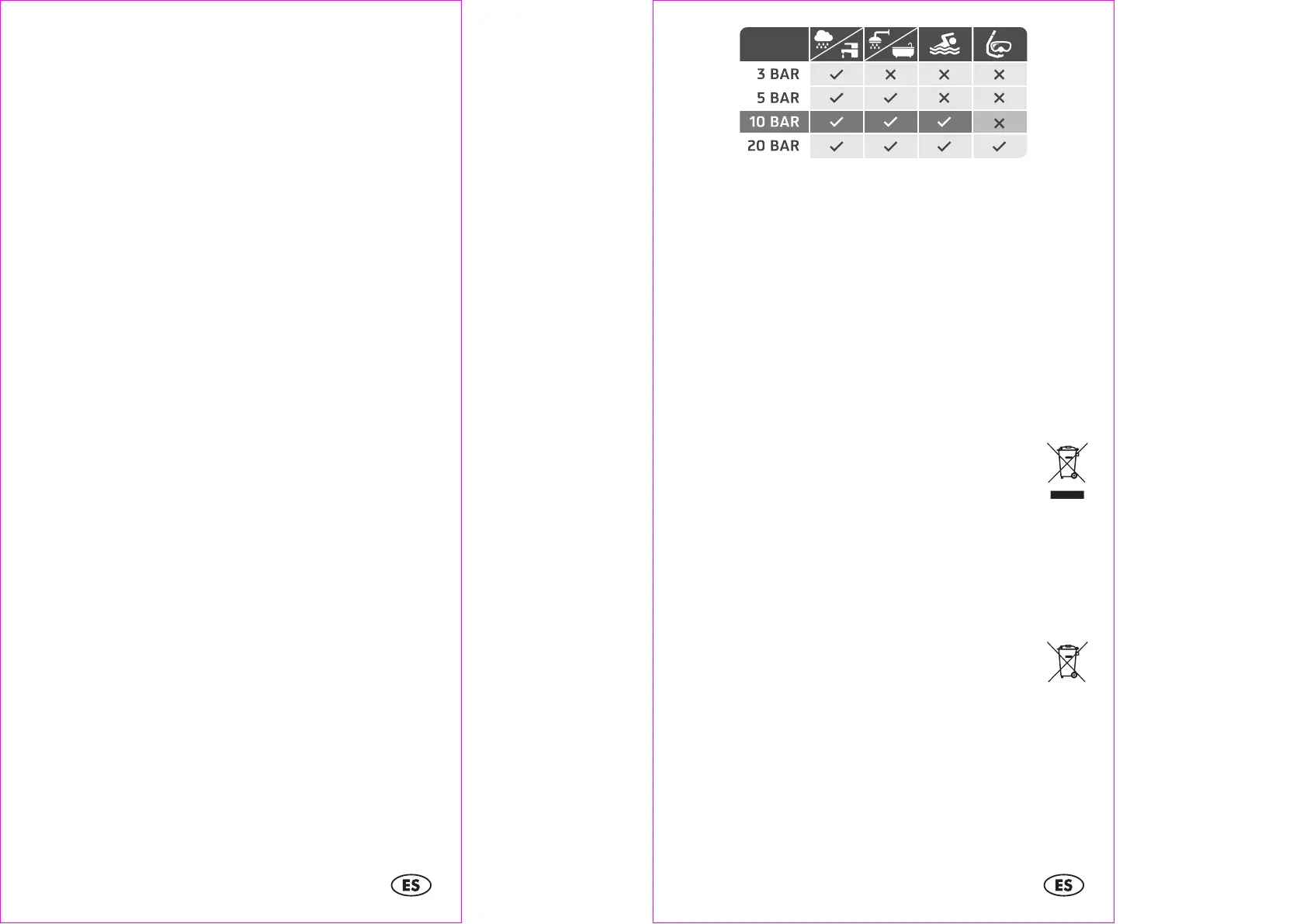 Resistencia al agua hasta 10 bares. La indicación- bar se