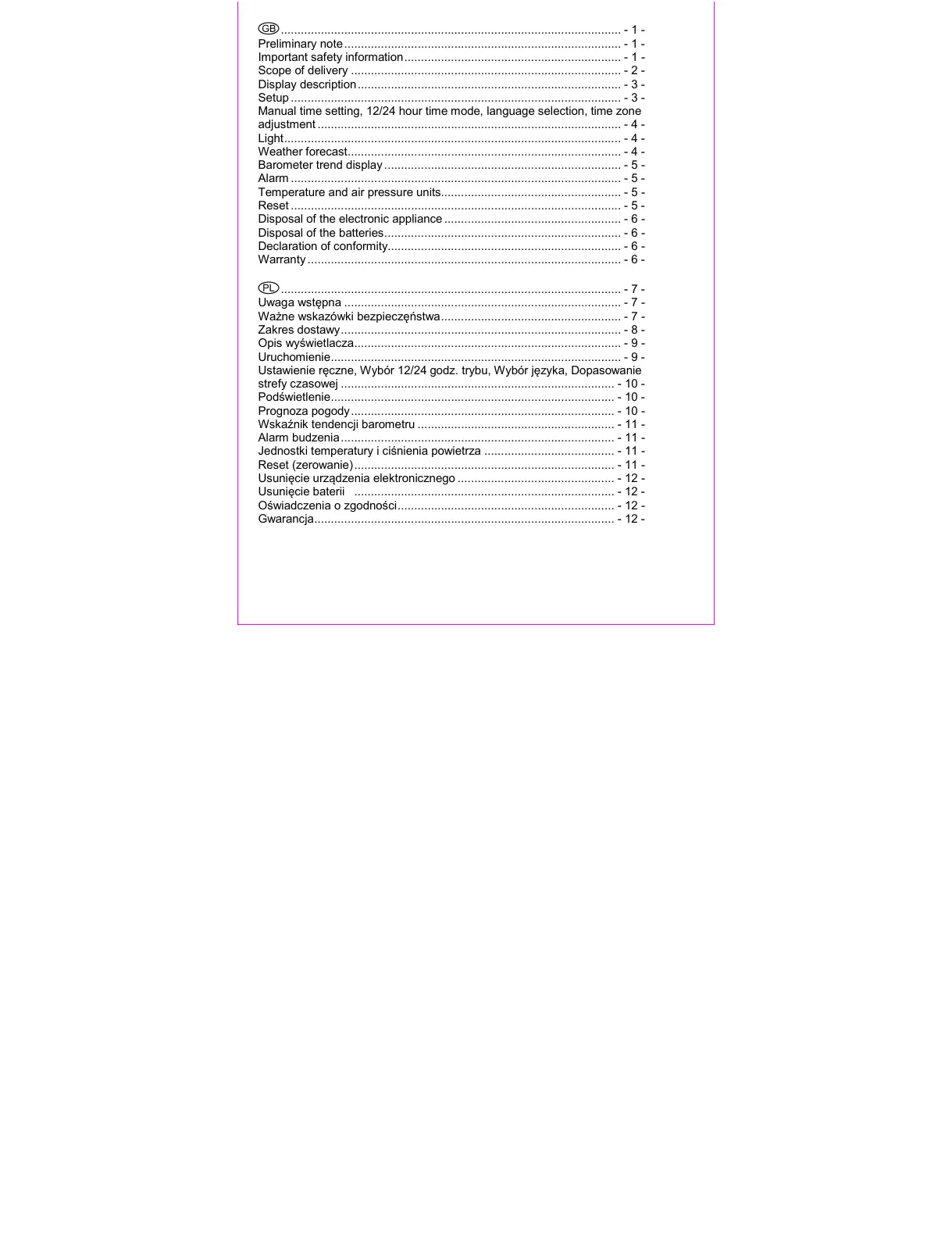 Wskaźnik tendencji barometru ........................................................... - 11 -