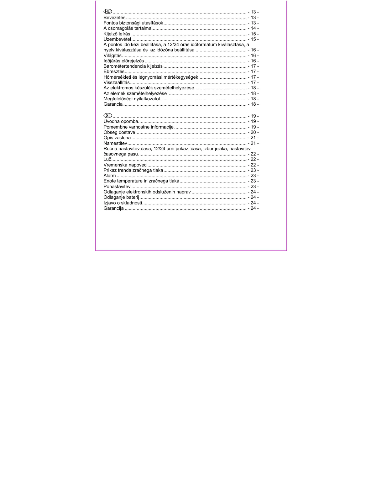 Barométertendencia kijelzés .............................................................. - 17 -