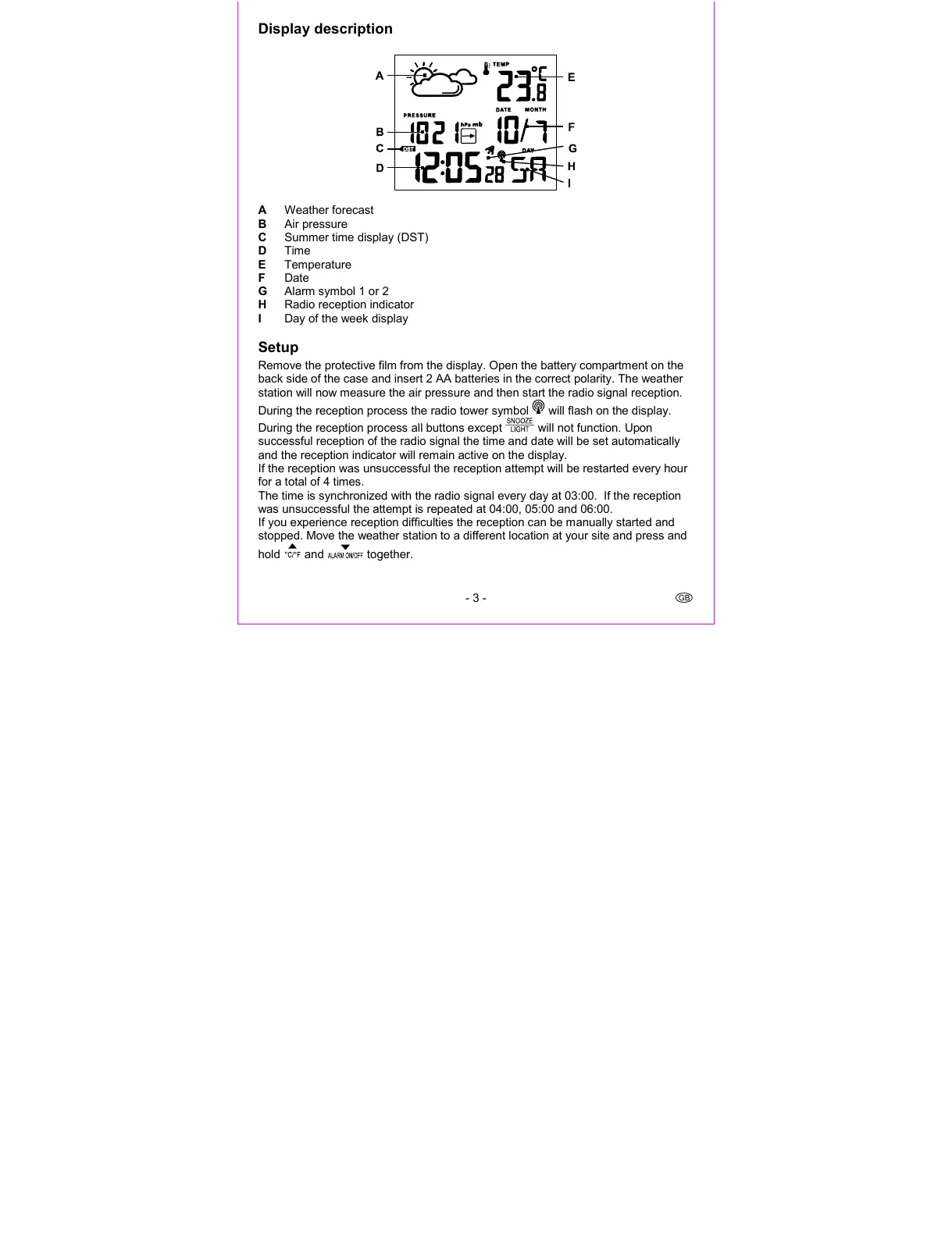 The time is synchronized with the radio signal every day at 03:00. If the reception