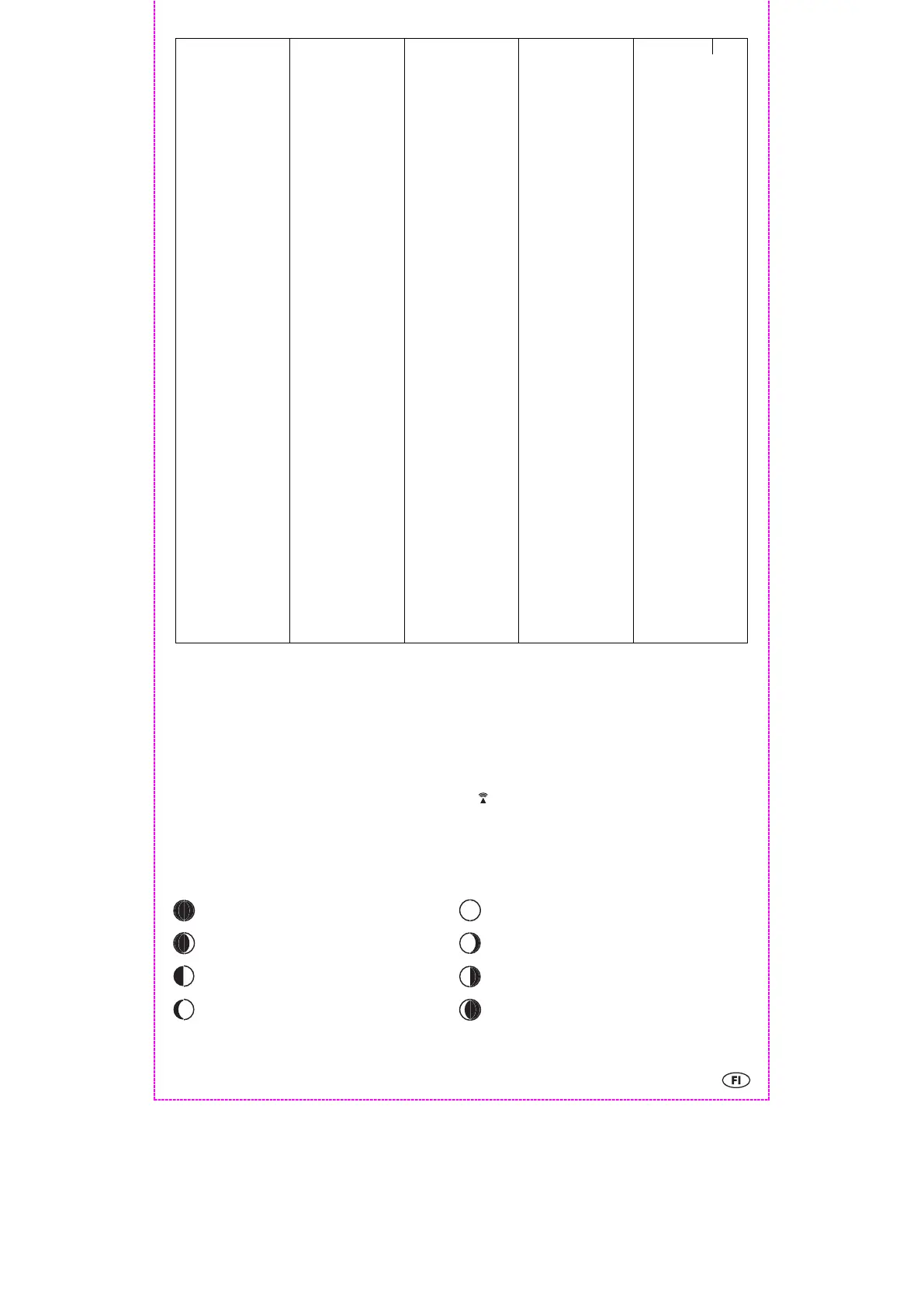 Sääasemasi pystyy näyttämään kuunvaiheet. Taulukossa näet 8 kuunvaihetta:
