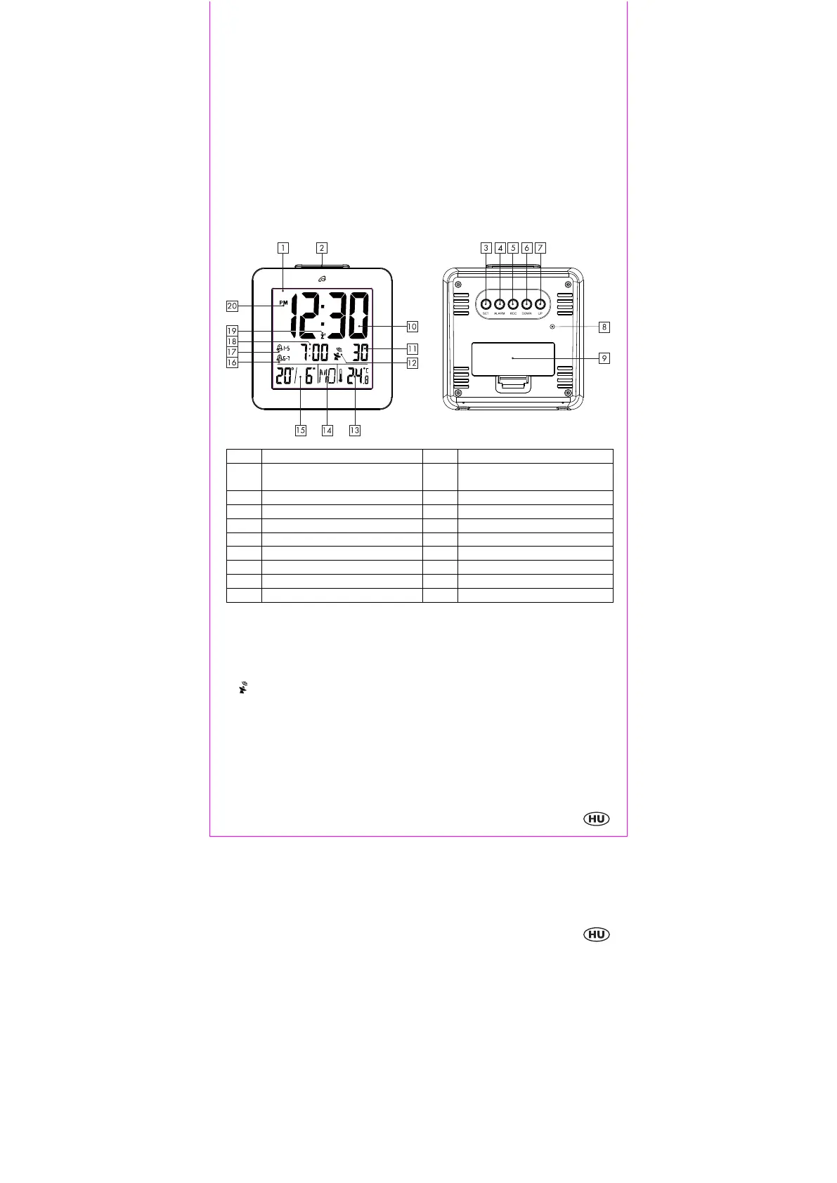 Vegye le az ébresztöóra kijelzöjéröl a védöfóliát. Nyissa ki az elemtartót a készülék