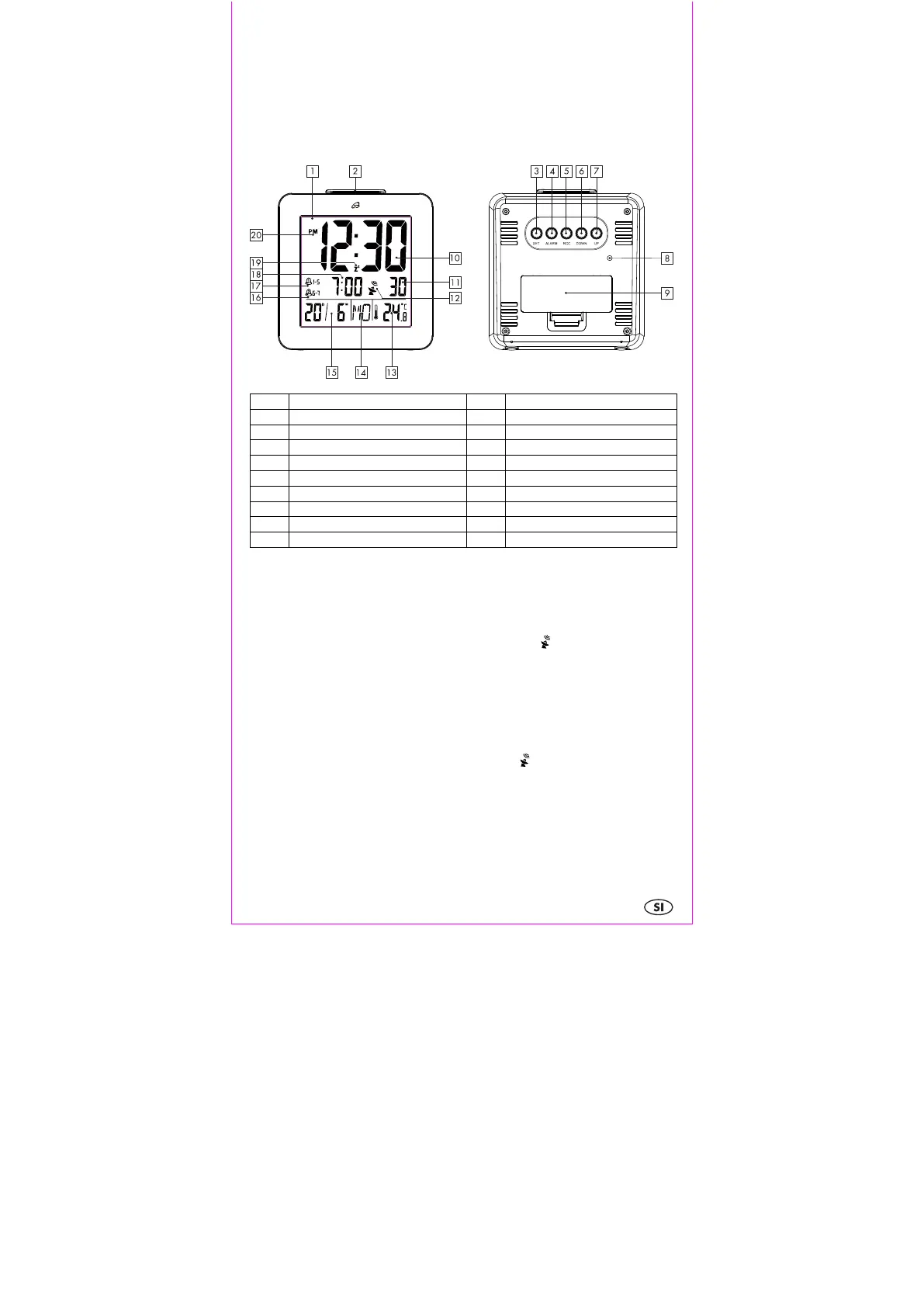 Odstranite zaščitno folijo z zaslona budilke. Odprite predal za baterije na hrbtni strani