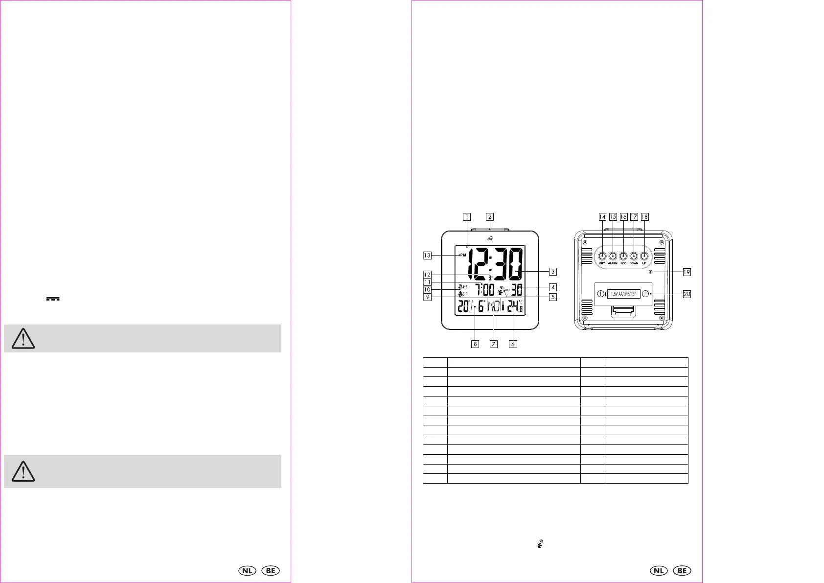 eerst vertrouwd met alle bedienings- en veiligheidsinstructies voordat u de wekker gaat