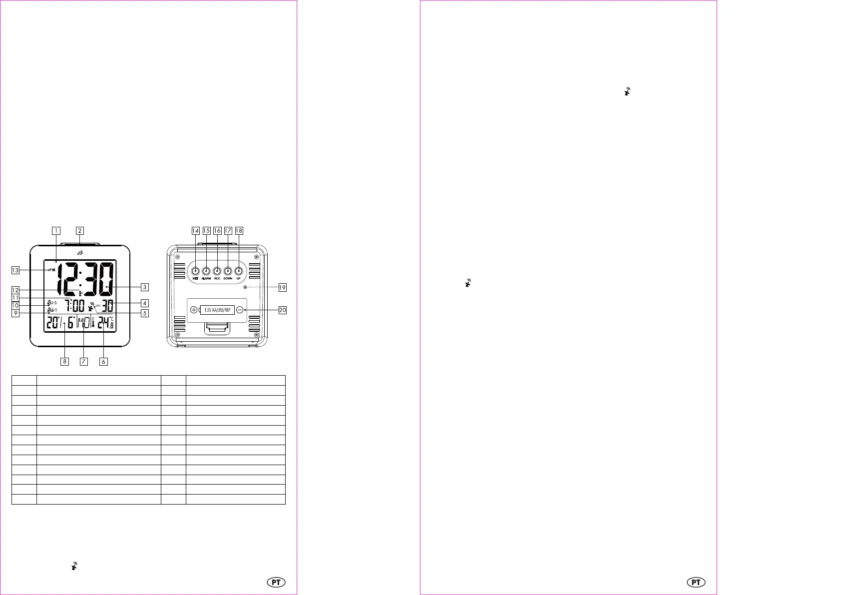 Não utilize o despertador em divisões com humidade elevada (por exemplo, casa de
