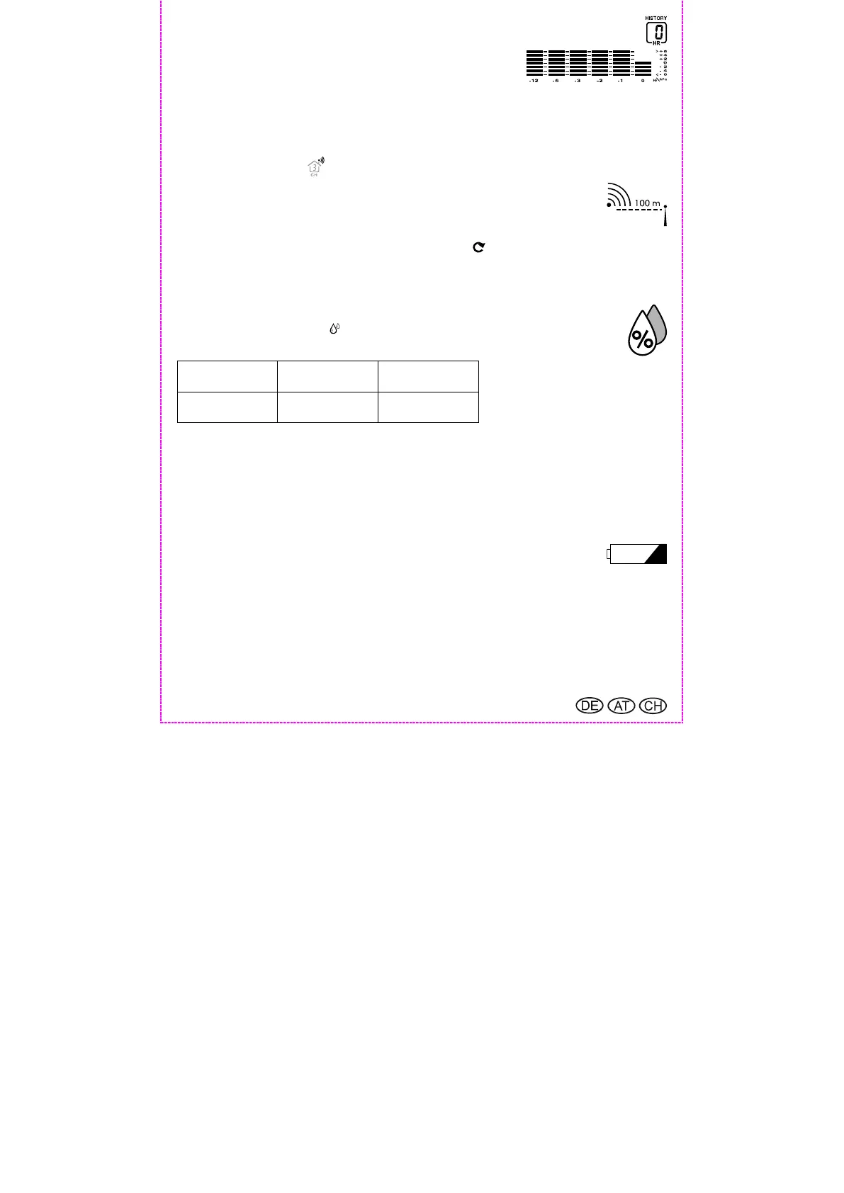 ! Hinweis: Der Außensensor muss in einem Umkreis von maximal 100 m ohne Hindernisse zur