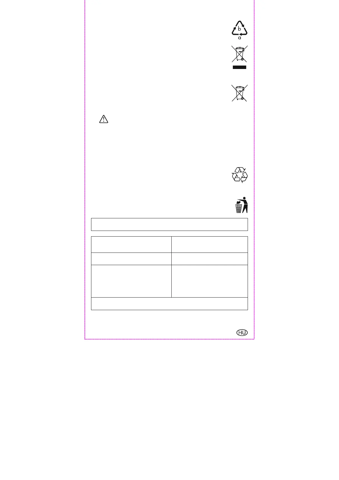 Az óra megsemmisítése előtt vegye ki az elemeket, és kérem, hogy ezeket