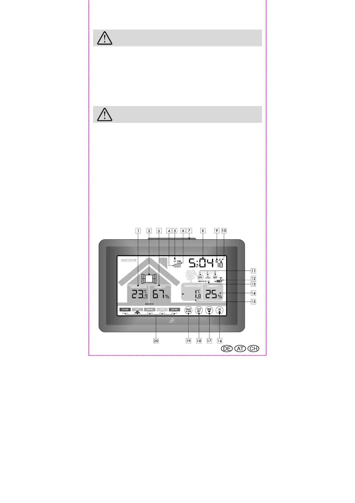 resultierenden Gefahren verstehen. Kinder dürfen nicht mit der Funk-Wetterstation