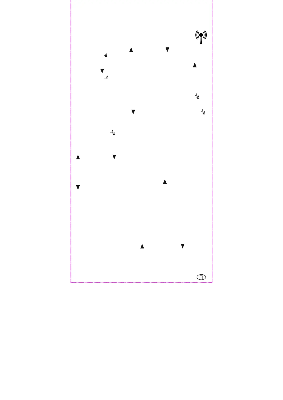 pitämällä 3 sekunnin ajan painettuna Alas-painiketta 26. Radiosignaalin symboli