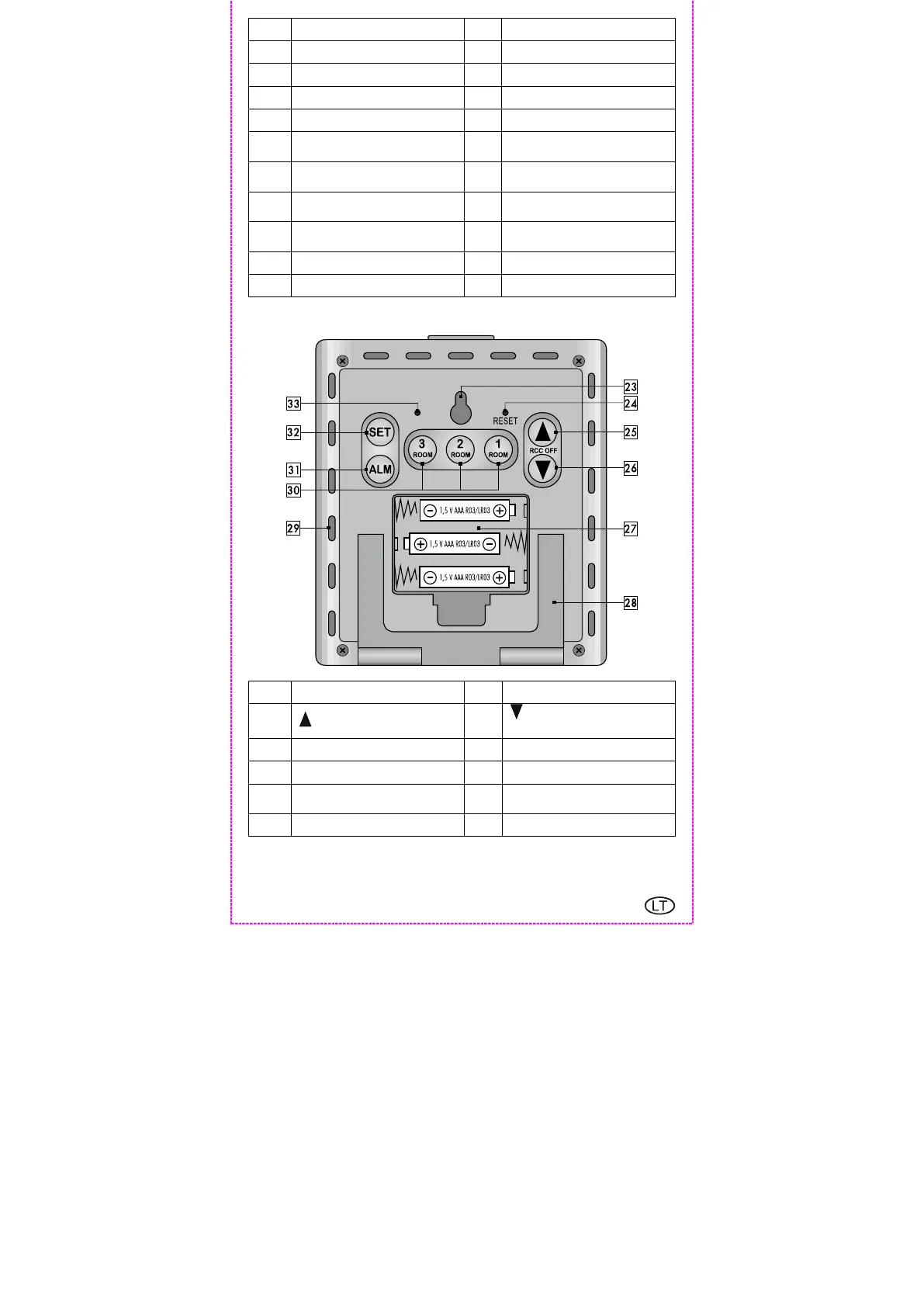 29 Vėdinimo angos 30 1–3 patalpų mygtukai
