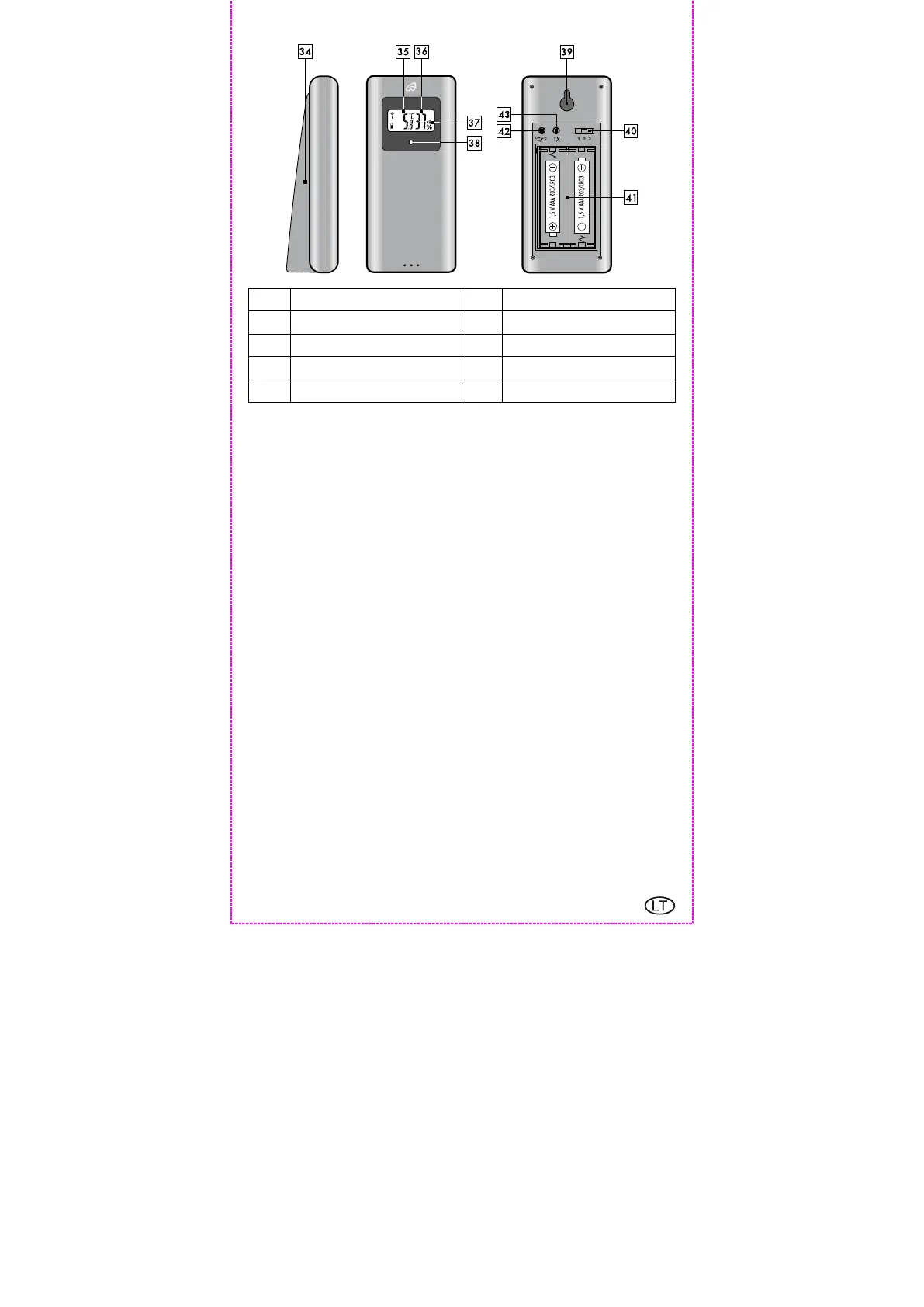 42 Mygtukas °C / °F 43 TX mygtukas