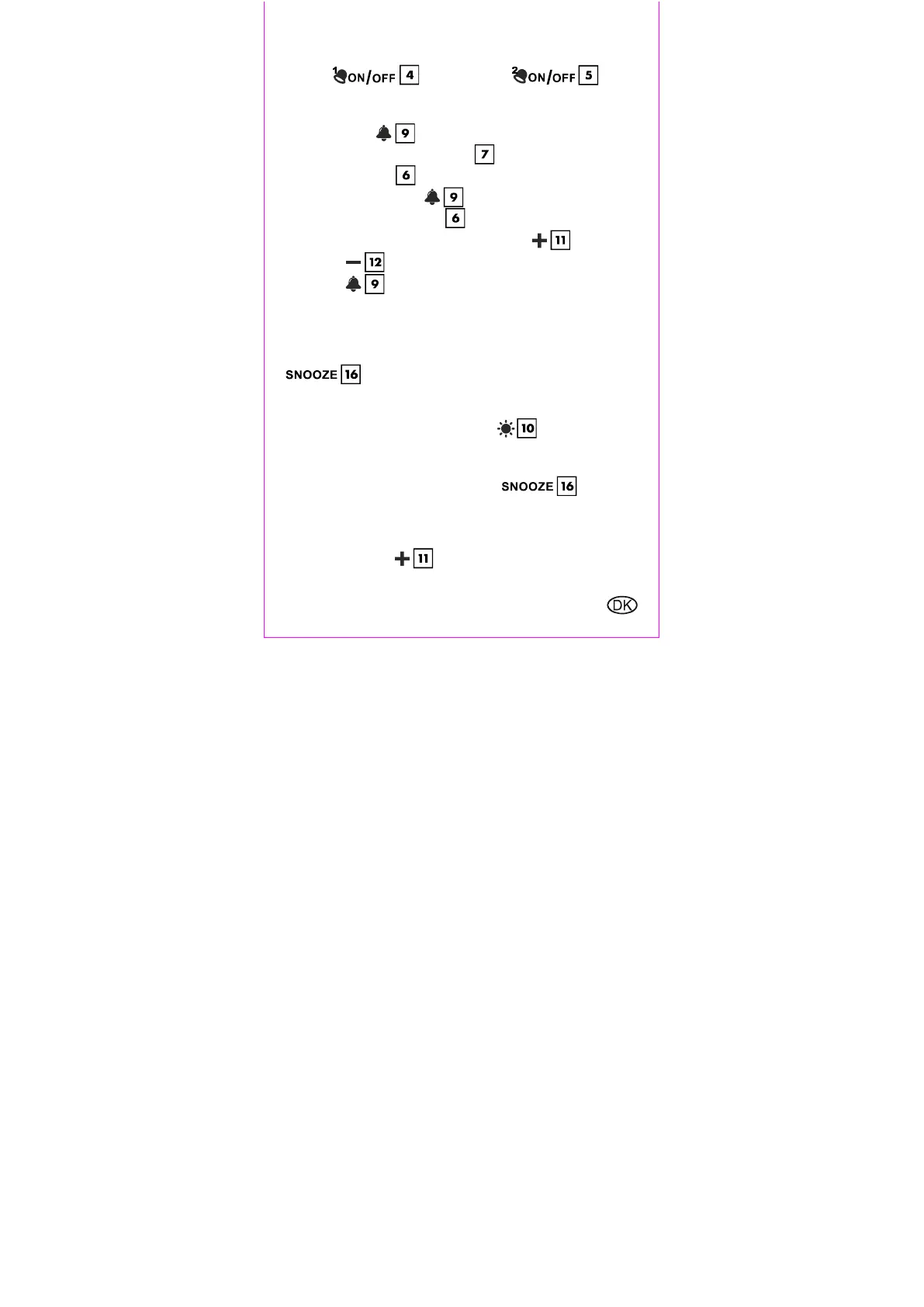 Tryk på tasten for at vælge alarm 1 eller 2. Den