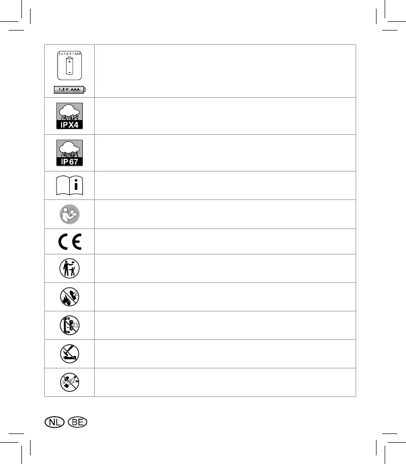 Gooi batterijen niet in het vuur en breng ze niet met vuur in contact.