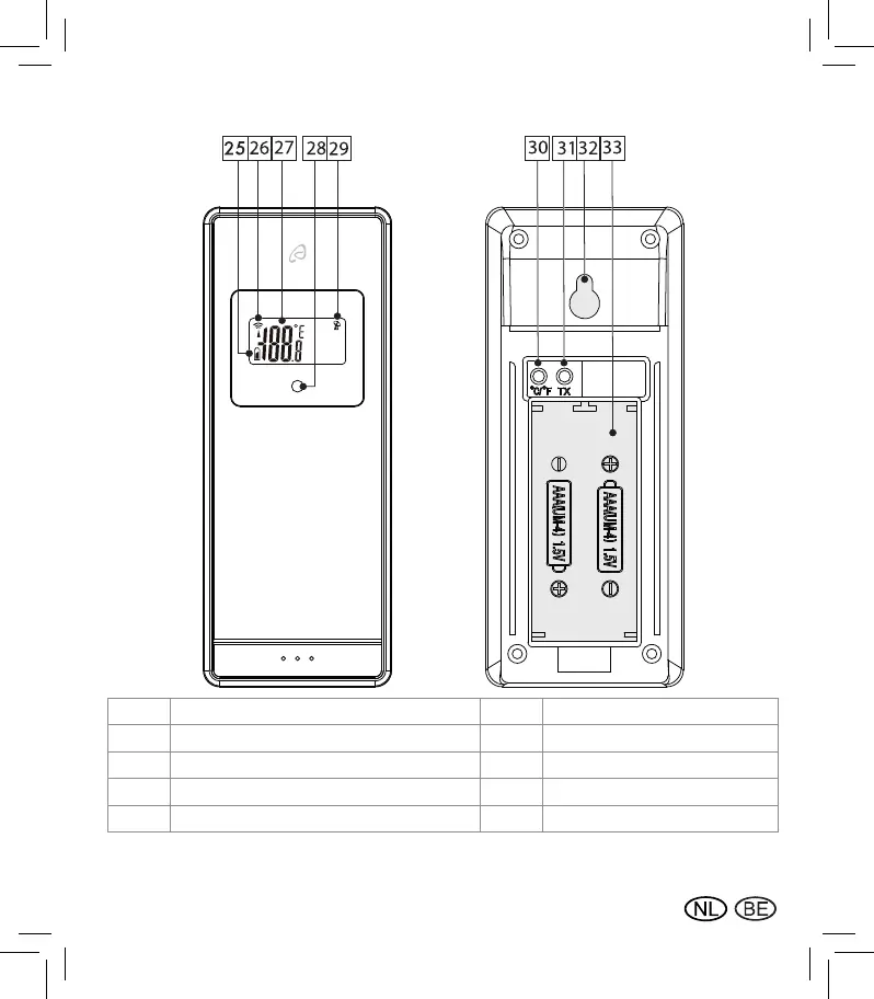 25 Batterijniveau waarschuwingsindicator 26 Radiosymbool