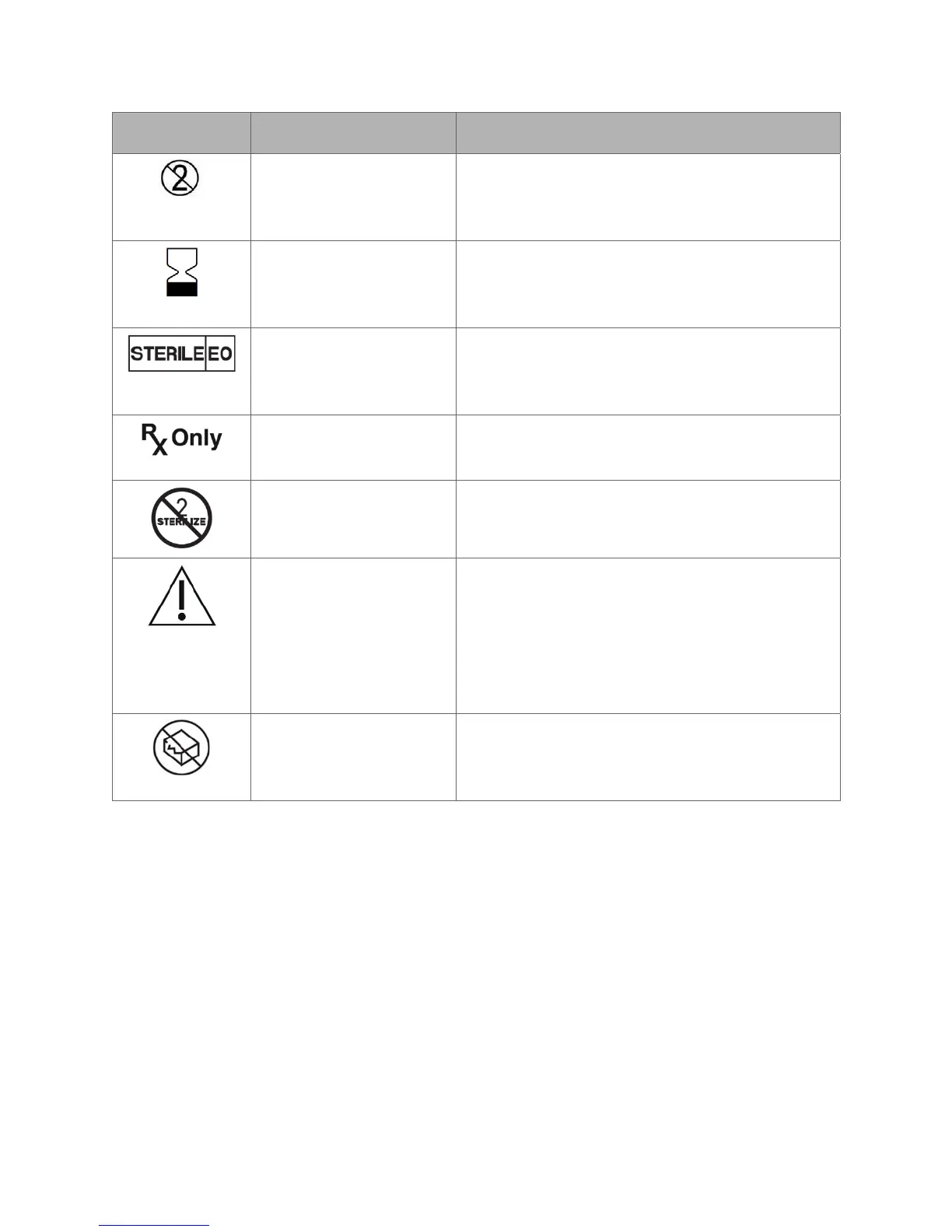 Do not re-sterilize This symbol indicates that the device should not