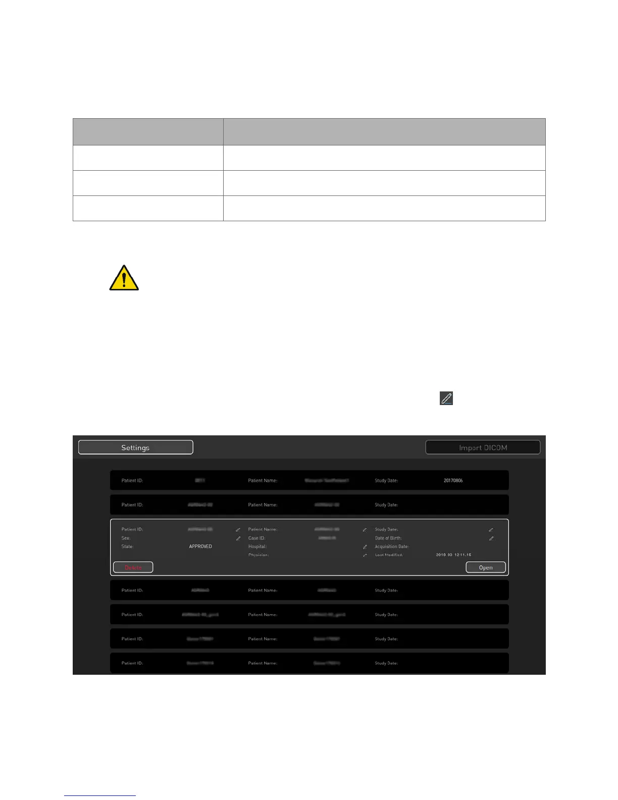 WARNING: Entering data in the wrong patient case can result in planning