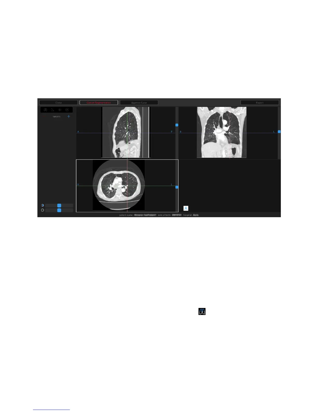 Segmentation view by clicking or tapping the icon. The axial slice overlay