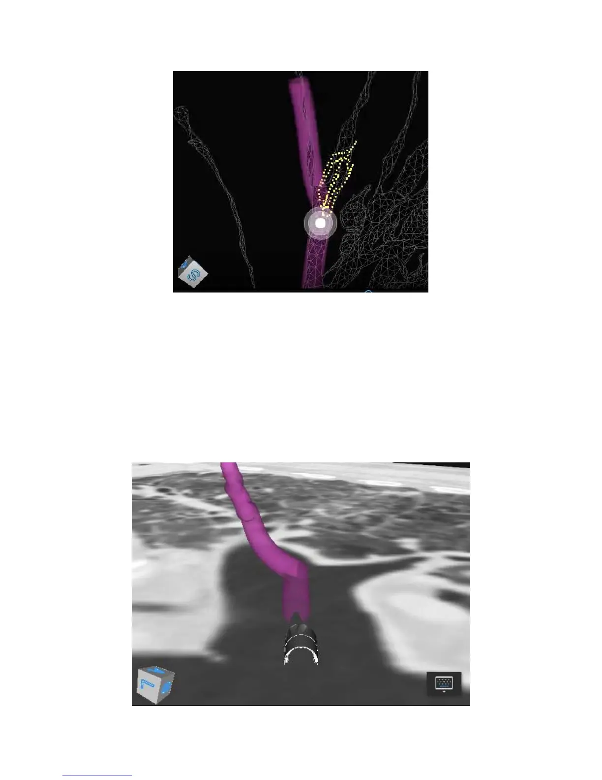 underneath the plane of the CT. The pathway is represented in this view as a 3D