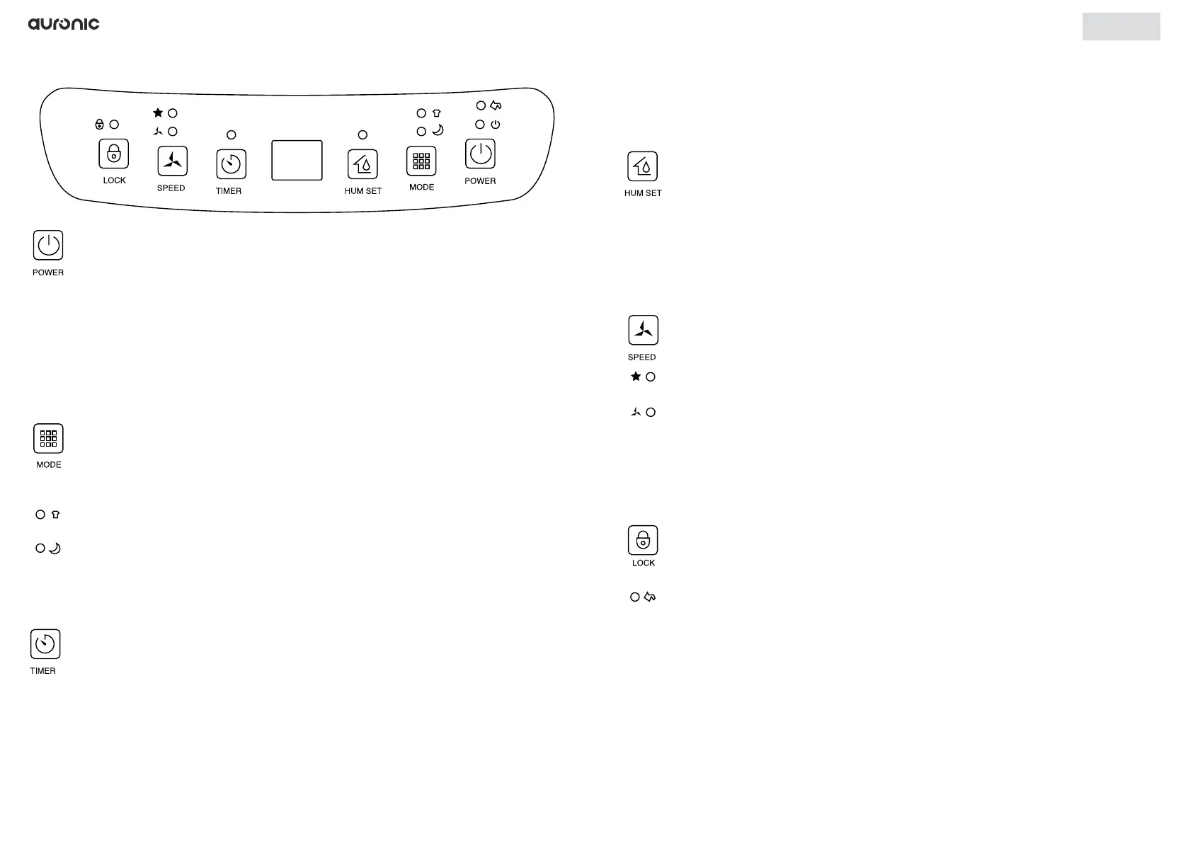• Autoläge: om luftfuktigheten i rummet är 3 % högre än den inställda luftfuktigheten