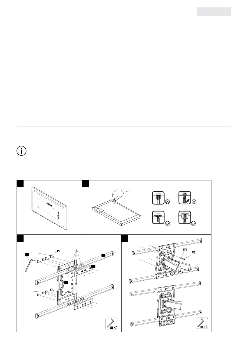 ◊ Controleer voor gebrik of jouw tv de juiste VESA-maat, schermafmeting en gewicht heeft.