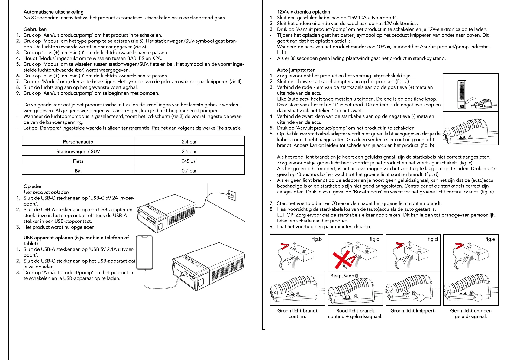 Druk op ‘Modus’ om het type pomp te selecteren (zie 5). Het stationwagen/SUV-symbool gaat bran-
