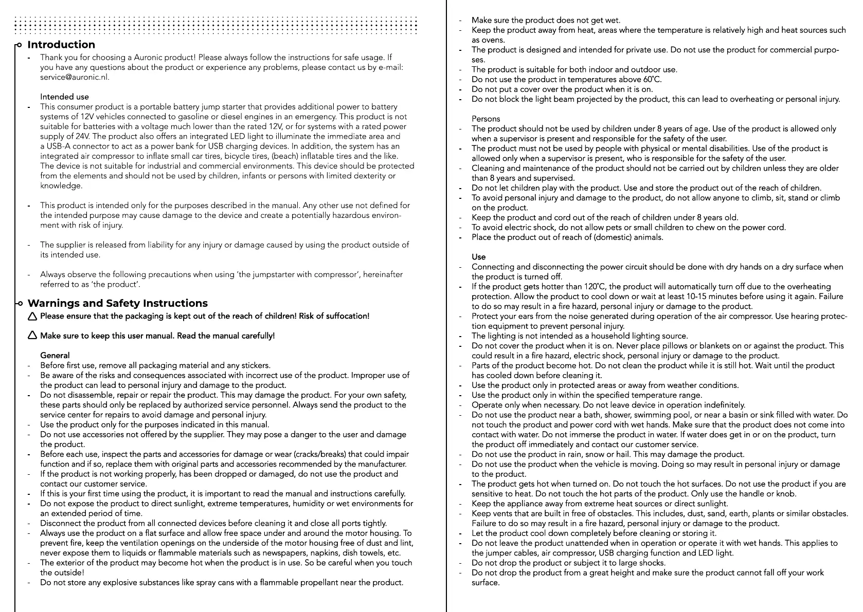 Thank you for choosing a Auronic product! Please always follow the instructions for safe usage. If
