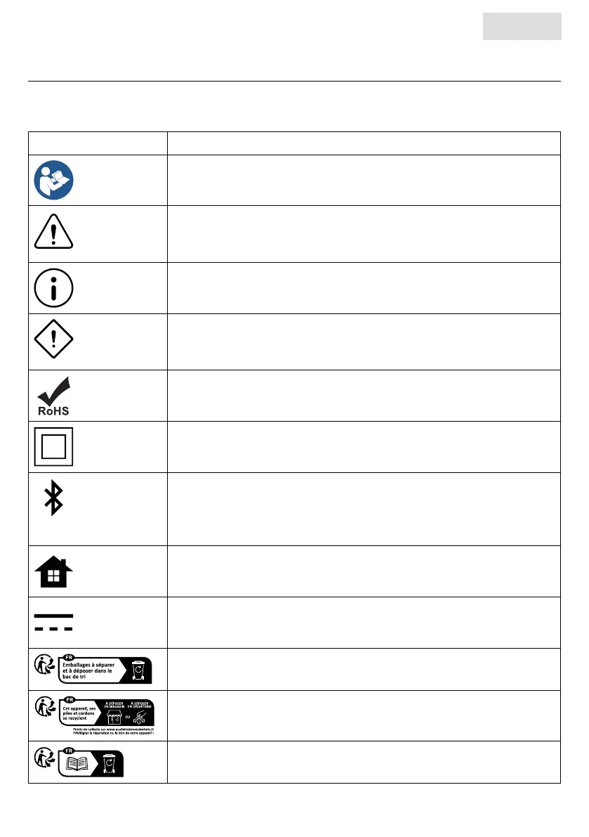 Les avertissements et symboles suivants sont utilisés dans ce manuel, sur l’emballage et sur le