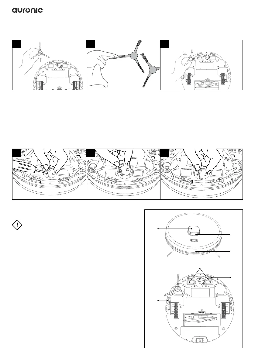 1. Wrik het universele zwenkwiel aan de onderkant van de robot voorzichtig met een