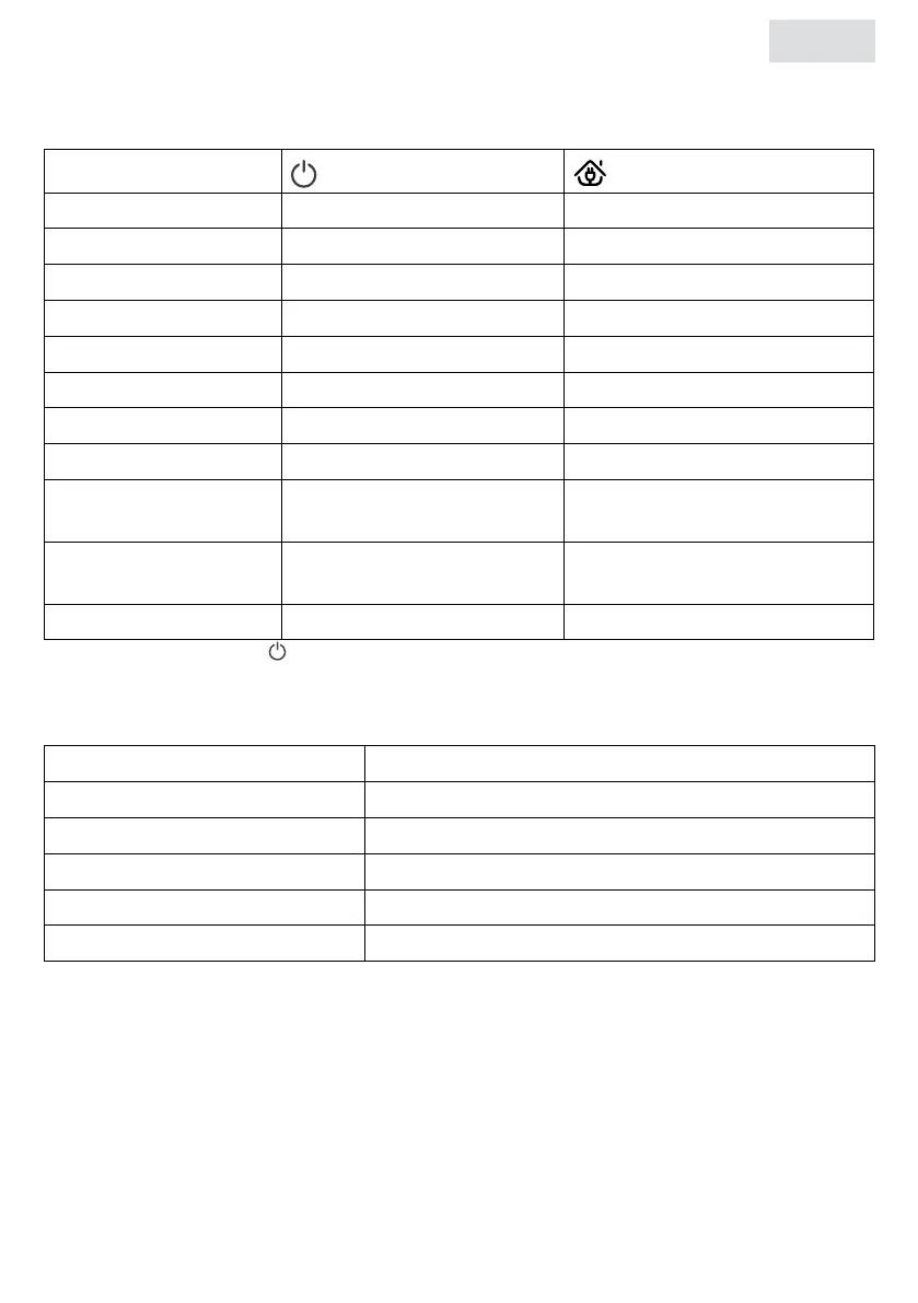 Standby Green light continuously on Off
