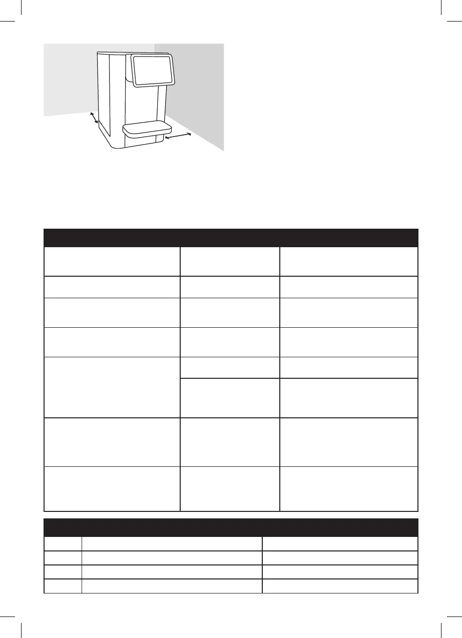minima > 100 mm (4 pollici) dalla parete posteriore e dal