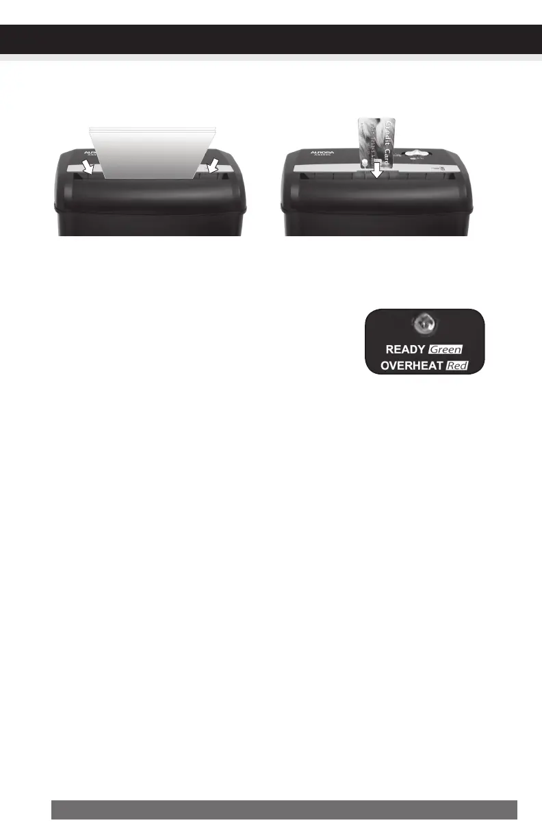 •Only shred credit cards by feeding them vertically i nto the middle of the entry, releasing when shred