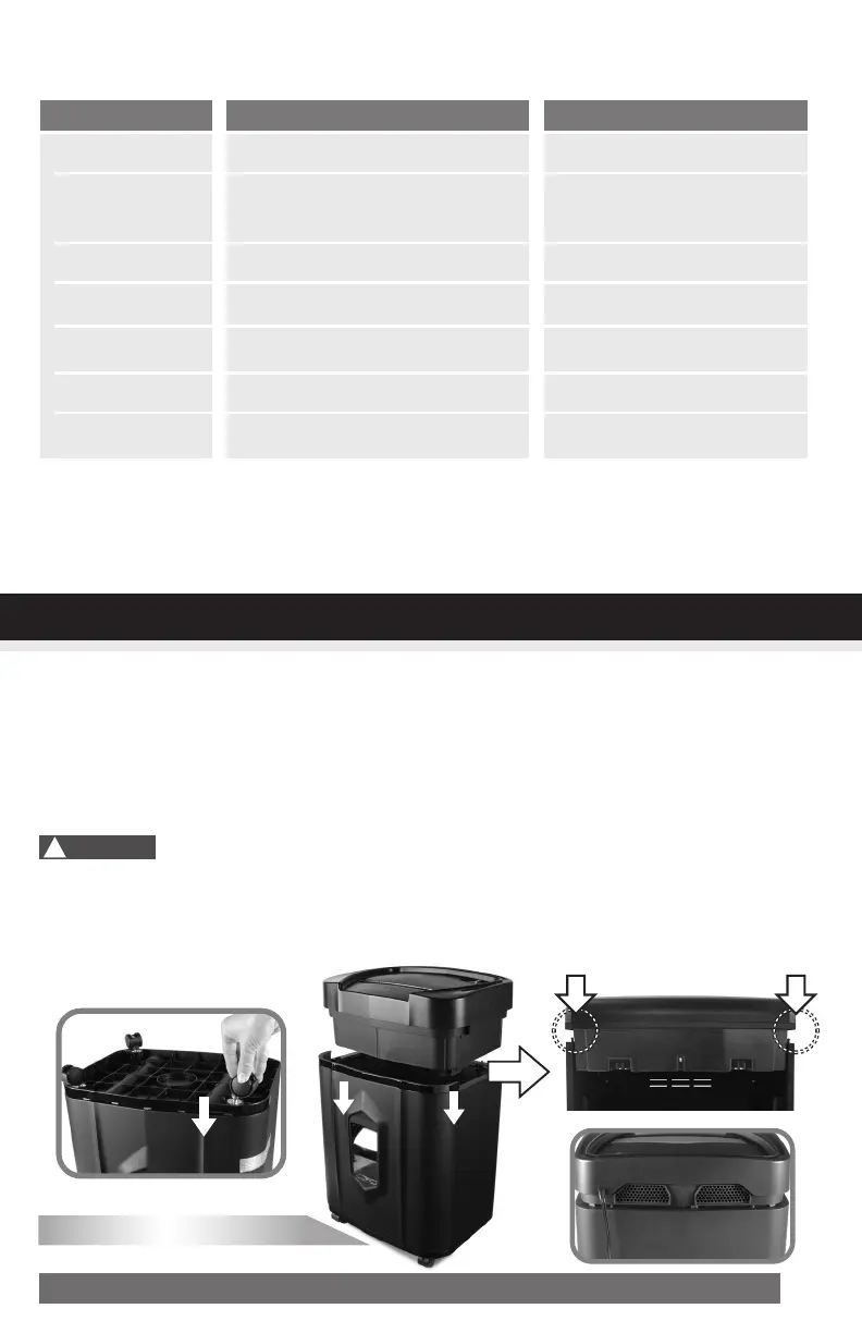 removal. The supplied wastebasket activates a safety switch, which allows the shredder to be operable.