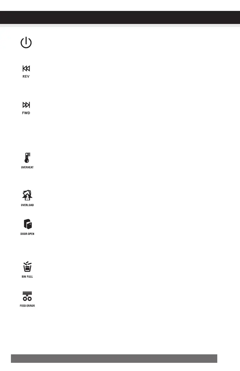 When basket is full, RED light will indicate it needs to be emptied. While lit, the shred-