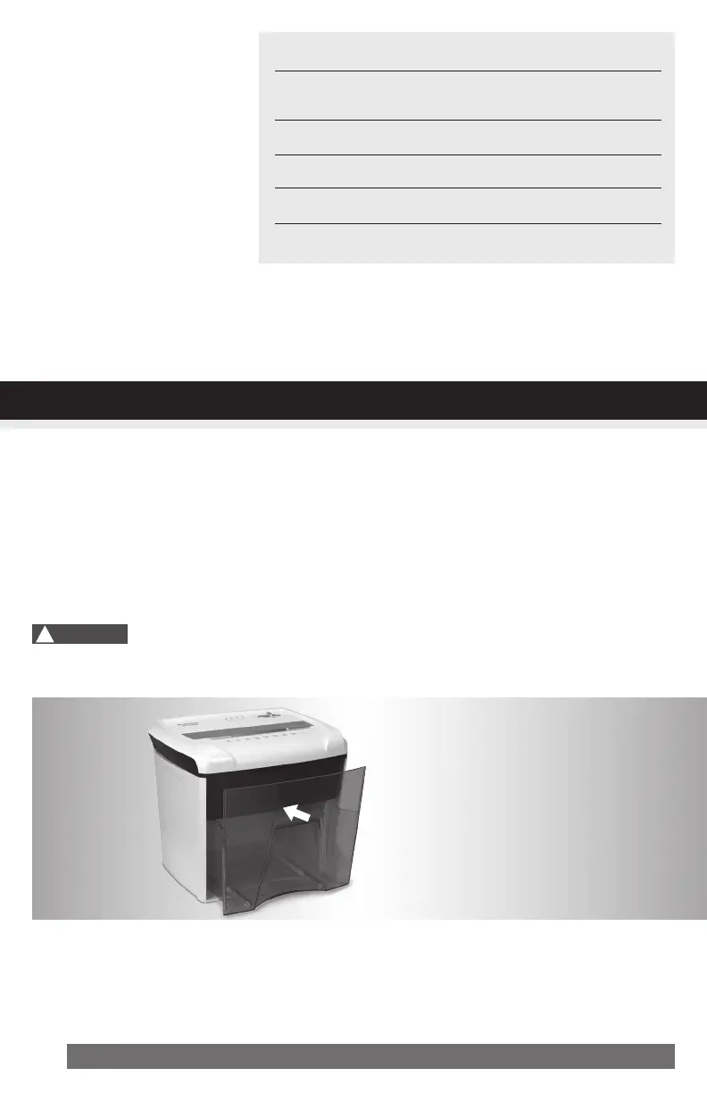 upon bin removal. The supplied wastebasket activates this switch, which allows the shredder to be