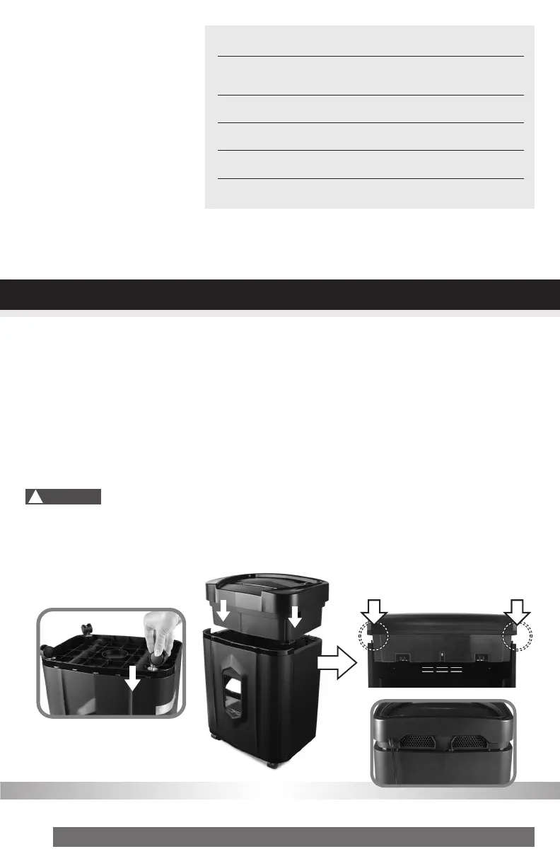 upon bin removal. The supplied wastebasket activates this switch, which allows the shredder to be