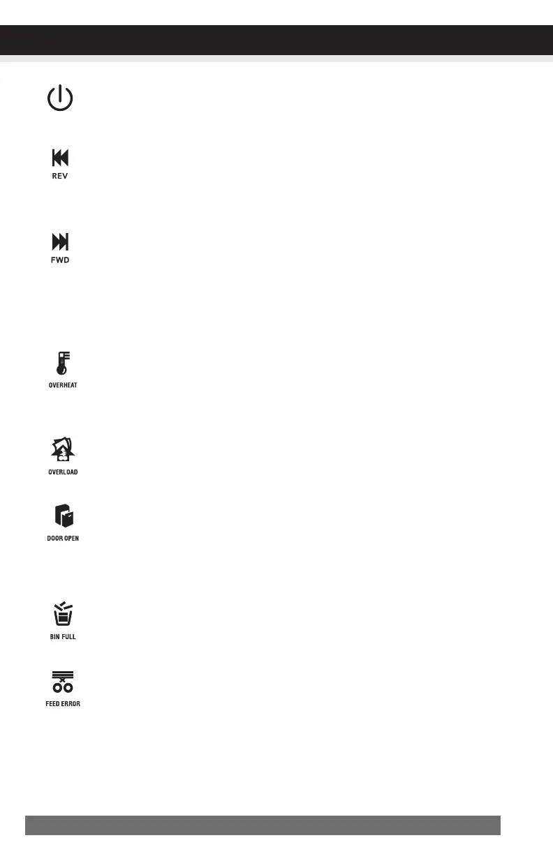 When basket is full, RED light will indicate it needs to be emptied. While lit, the shred-