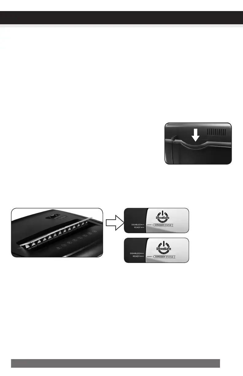 feature will be activated and the shredder will be inoperable. The “SHREDDER STATUS” indication line
