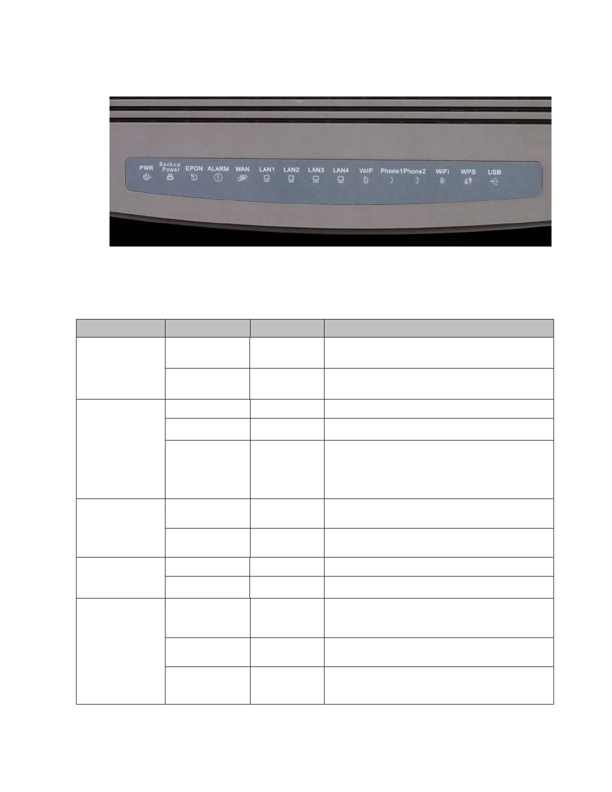 Figure 1 LED Indicators on EPON Multi-service Gateway ONT