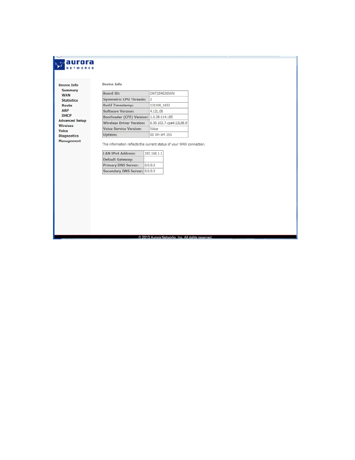 Aurora ONT-2-E4021i - Figure 18 Device Info Summary Screen