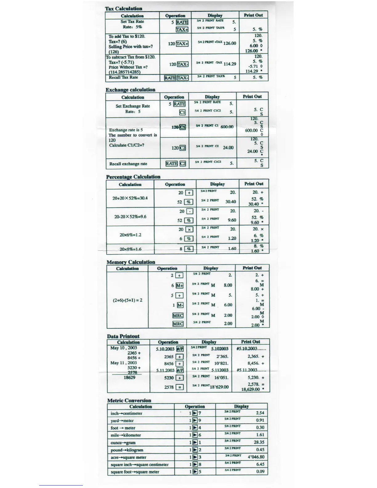 Aurora PR600M - Advanced Calculation Functions; Tax Calculation; Exchange Rate Calculation; Percentage Calculation