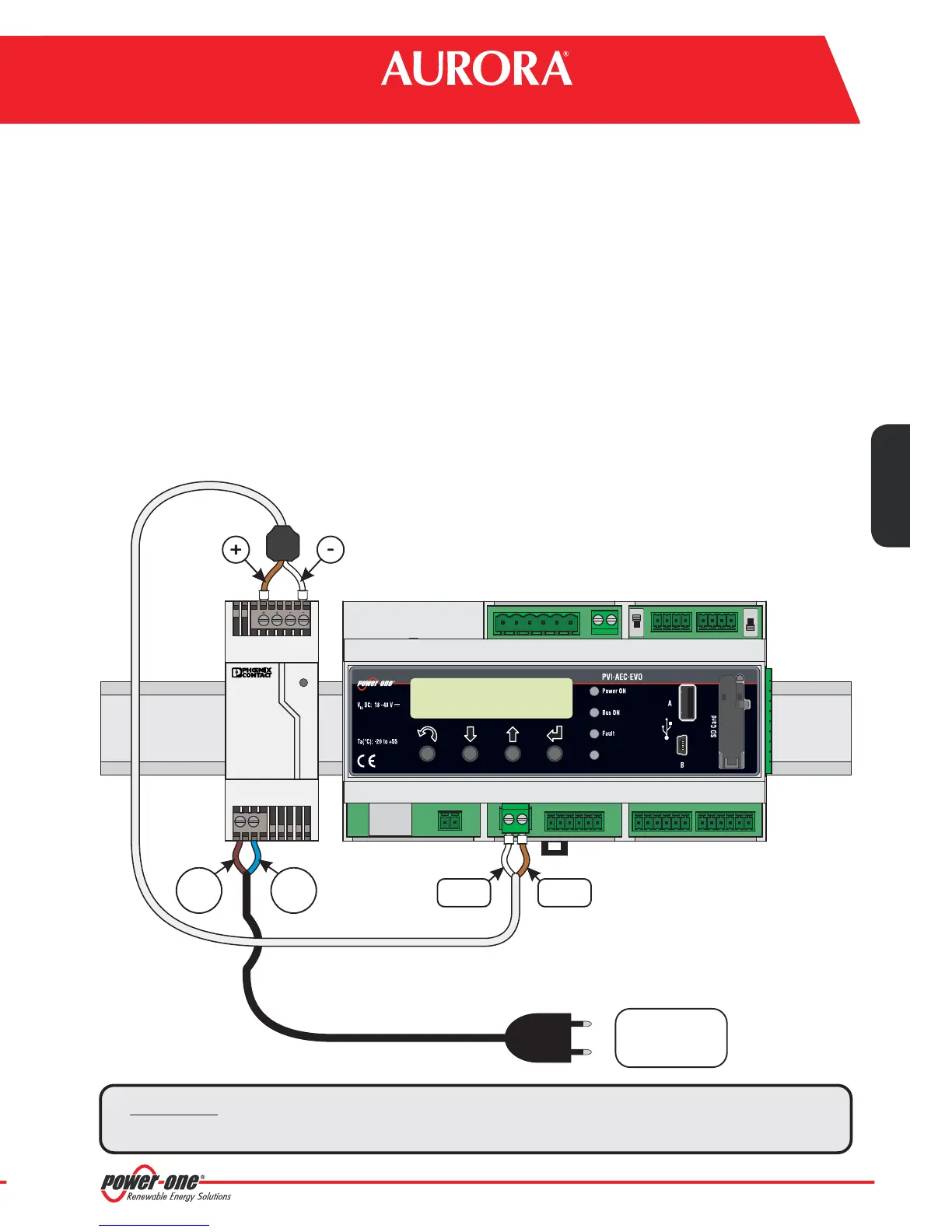 2. Brancher la sortie du bloc d'alimentation sur le bornier d'alimentation du PVI-AEC-EVO, en respectant la