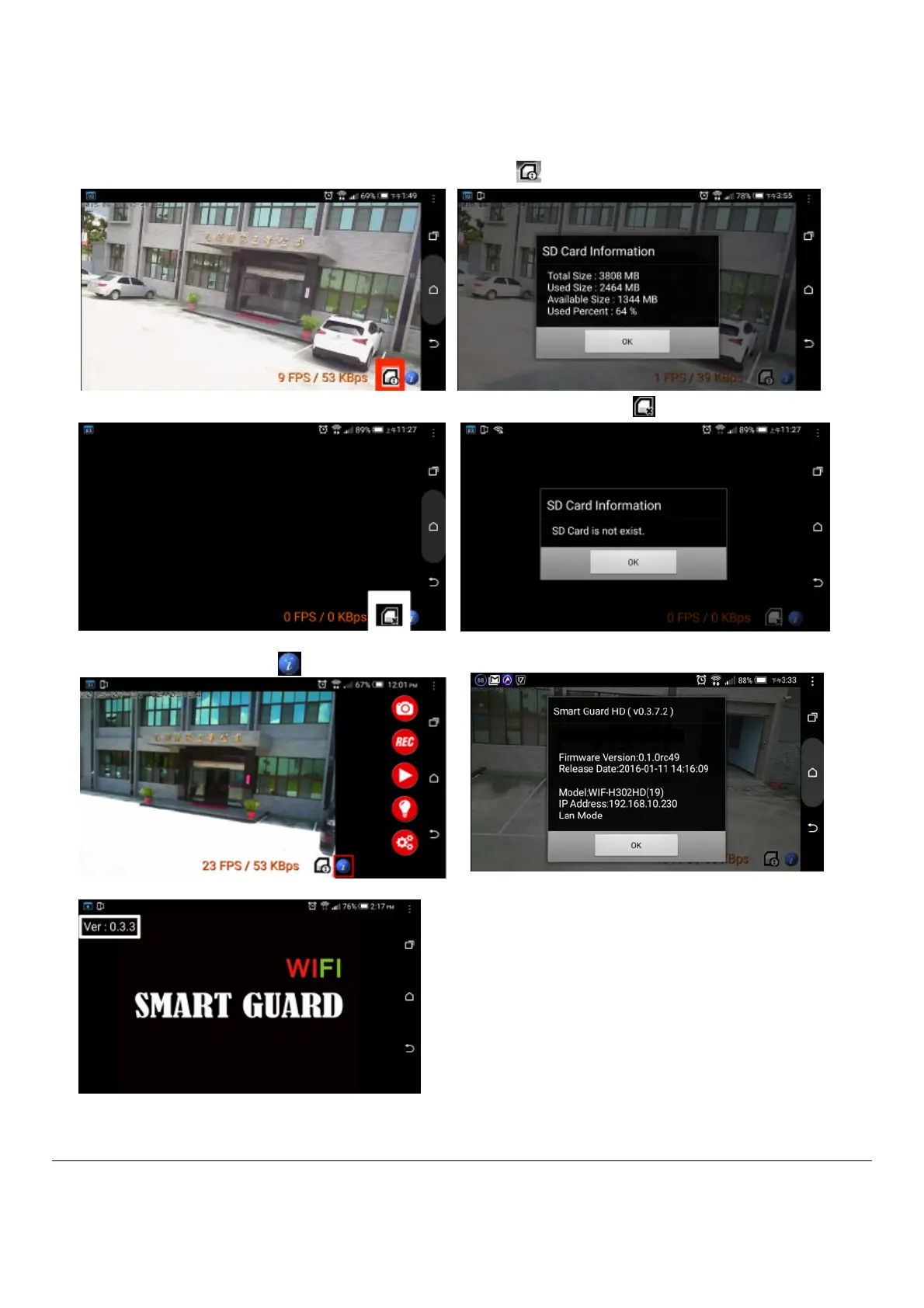 Press the bottom icon , it will show APP version and Firmware version.