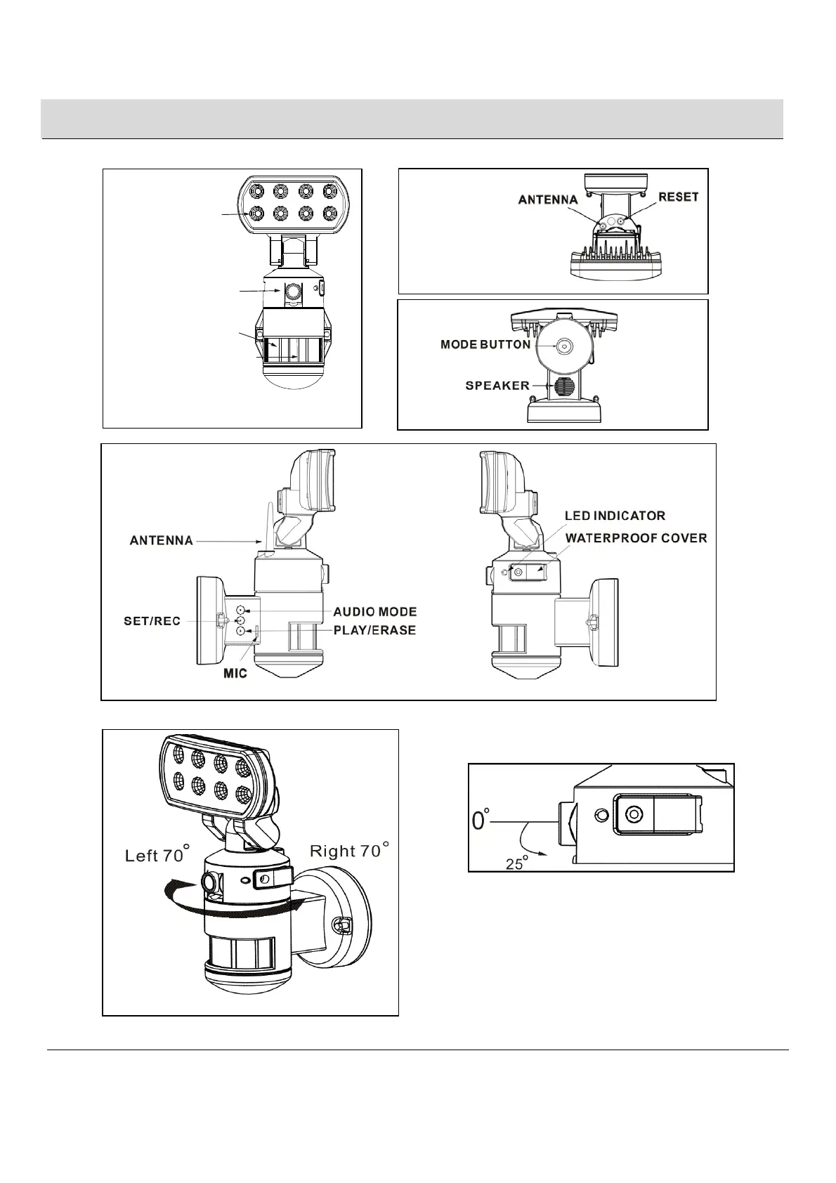Camera angle adjustable downward by 25