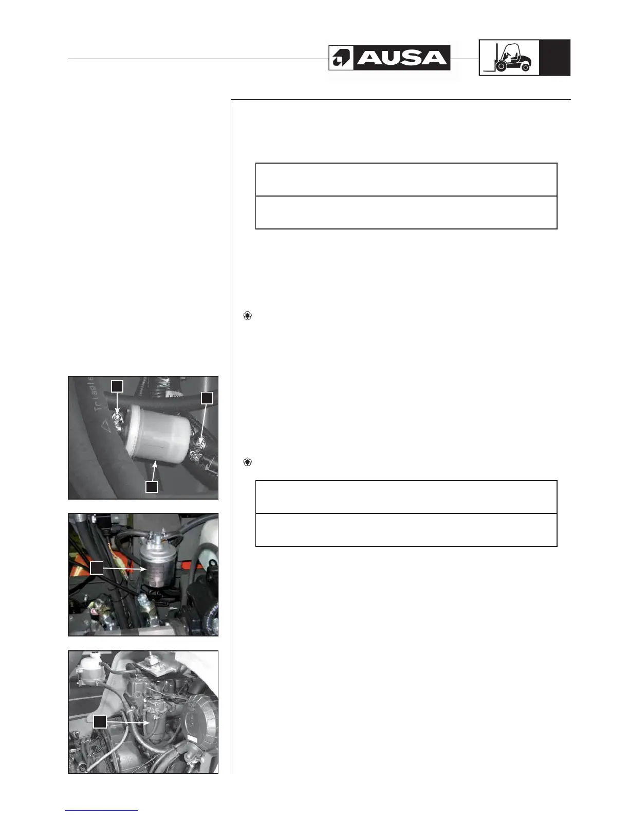 - Unscrew, by turning to the left, the cartridge (c) of the fuel filter and remove it