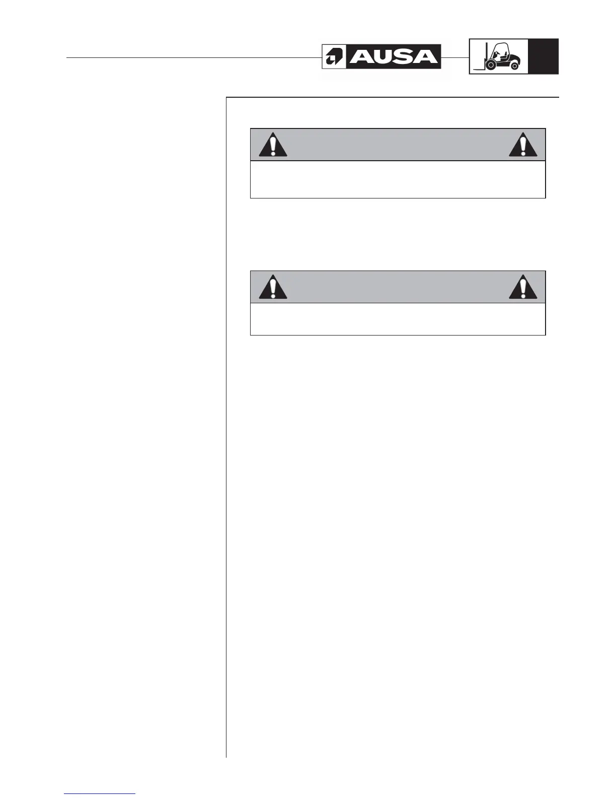- Inflate the forklift tyres when cold to the pressure given by AUSA before starting