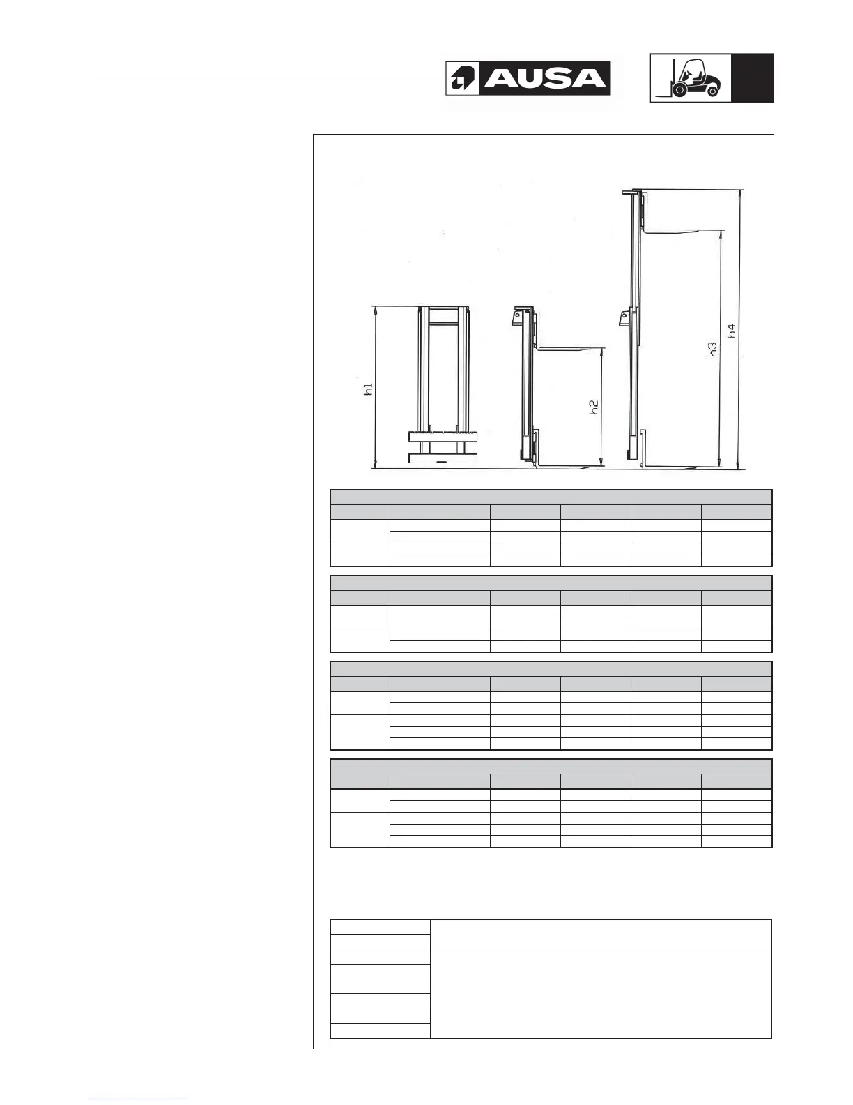 MAST Lift height (mm) h1 (mm) h2 (mm) h3 (mm) h4 (mm)