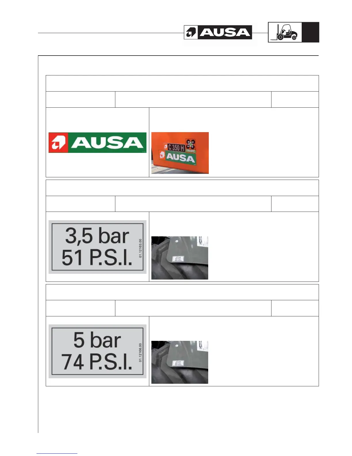 FRONT AXLE WHEELS INFLATED PRESSURE (modelos C350H / C350HI / C350H x4 / C350HI x4)